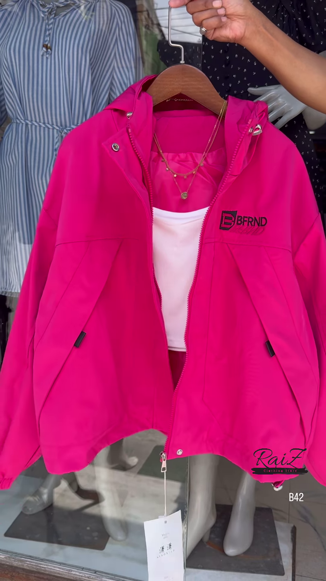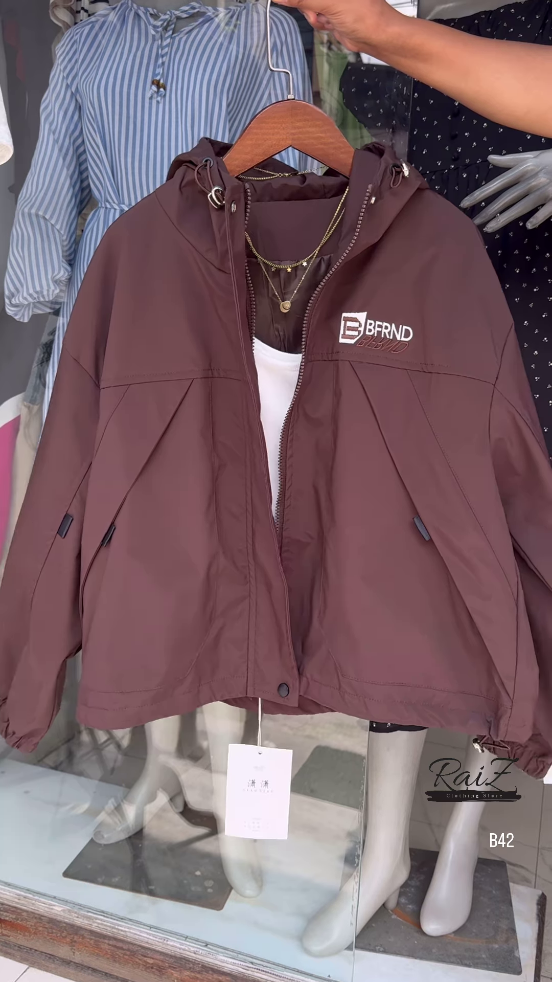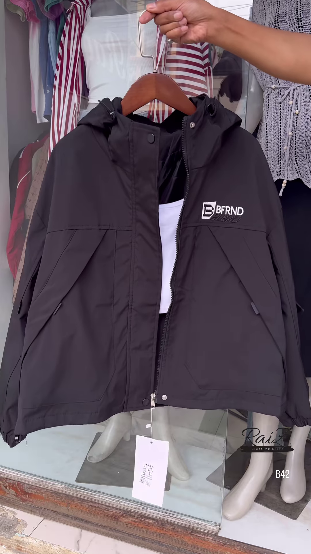 & Free ShippingMake a bold statement with this stylish BFRND hooded windbreaker! Perfect for all seasons, this lightweight jacket adds the perfect touch of sporty chic to your outfit.