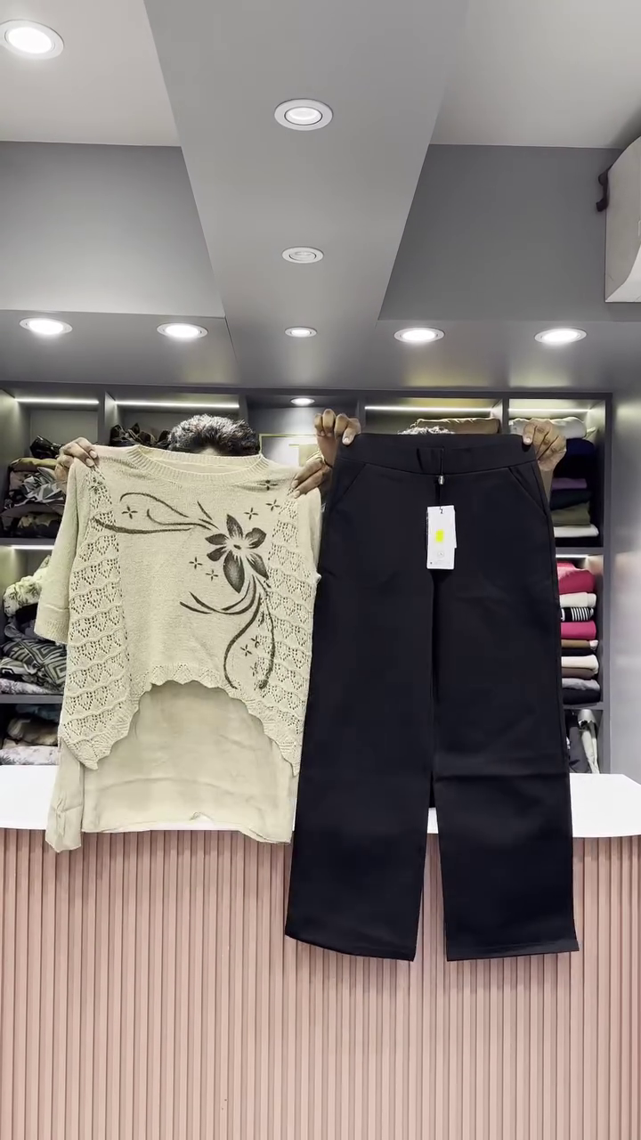 & Free ShippingThis image showcases a unique and stylish two-piece outfit, presented for a clear view by two individuals in a retail setting. The ensemble is a beautiful combination of textures and tones, blending bohemian charm with a modern, relaxed silhouette. The outfit consists of a striking sweater top and a pair of simple yet elegant pants.