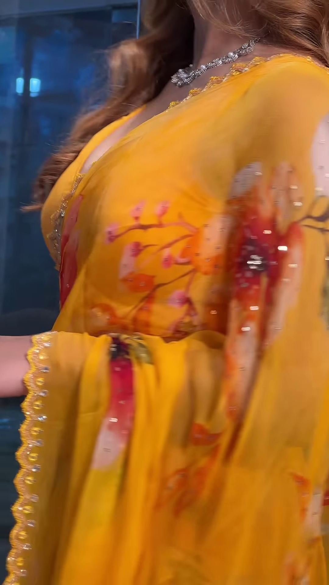 Crafted from ultra-soft, flowy organza-chiffon, this saree is the definition of “effortless elegance.” It drapes like a second skin, offering a slimming silhouette that moves gracefully as you walk.