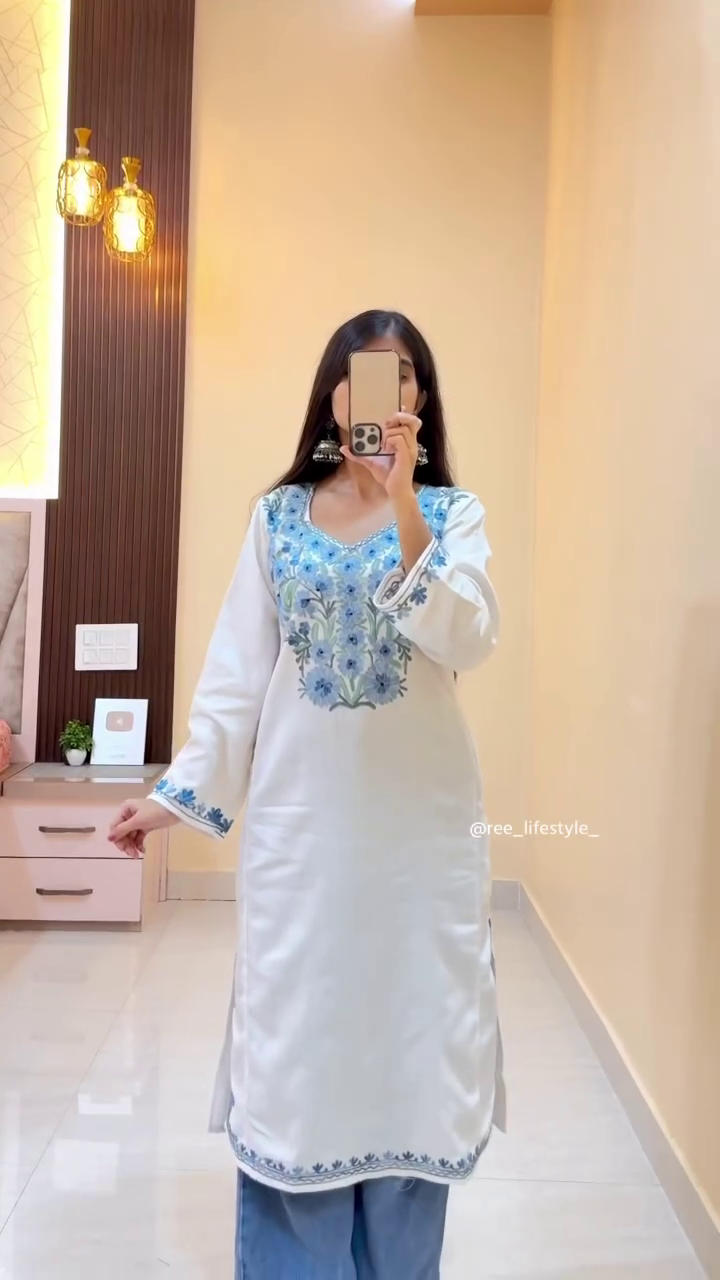 Soft fabric flow, breathable comfort, and a relaxed fall make this kurti ideal for long hours of wear. Paired with denims, leggings, palazzos, or straight pants, it adapts beautifully to different style moods—minimal, ethnic, Indo-western, or festive chic. Its lightweight feel ensures ease of movement, making it a reliable choice for daily elegance.