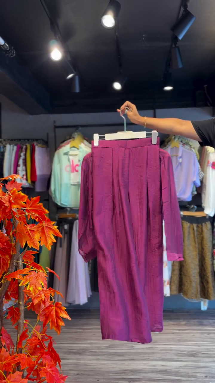 Plum Bloom Shirt & Wide-Leg Pants in Deep Magenta