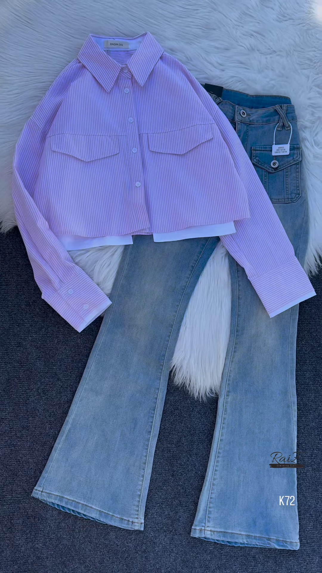 Striped Cropped Shirt with Flared Denim Jeans – Trendy & Chic